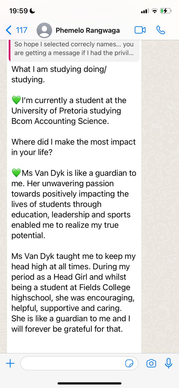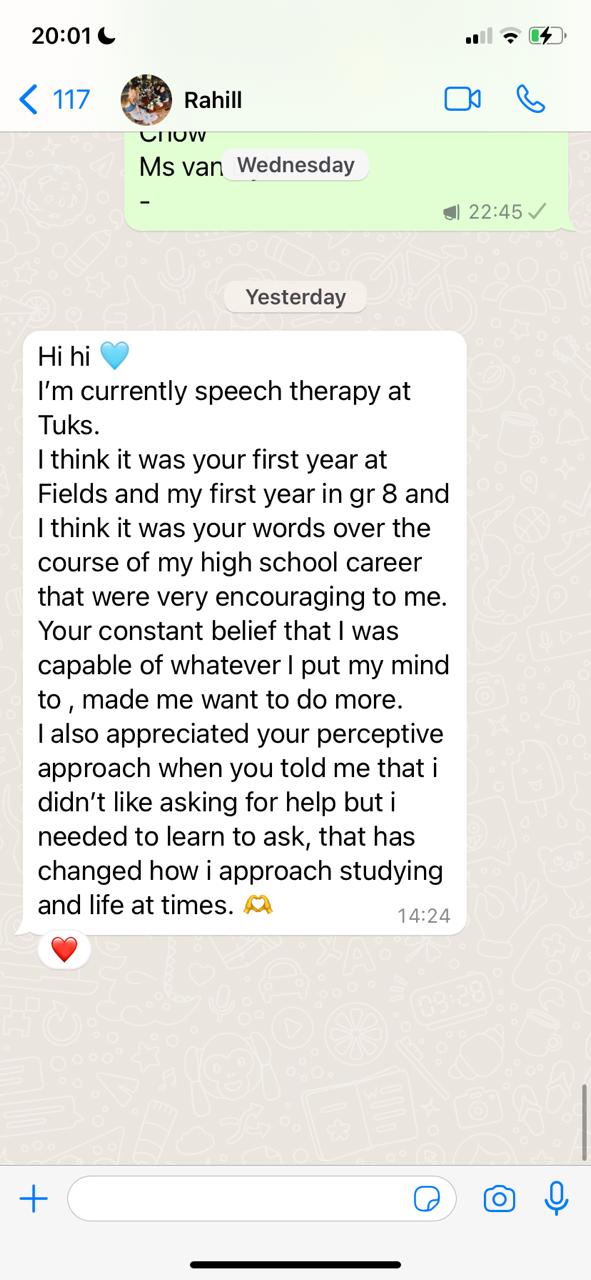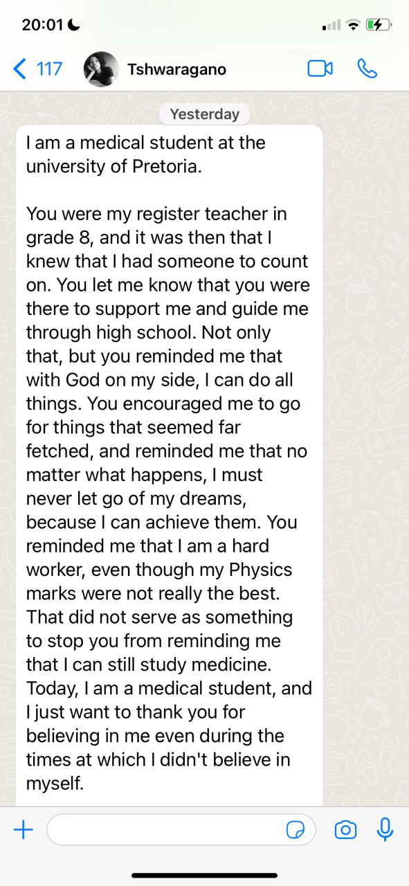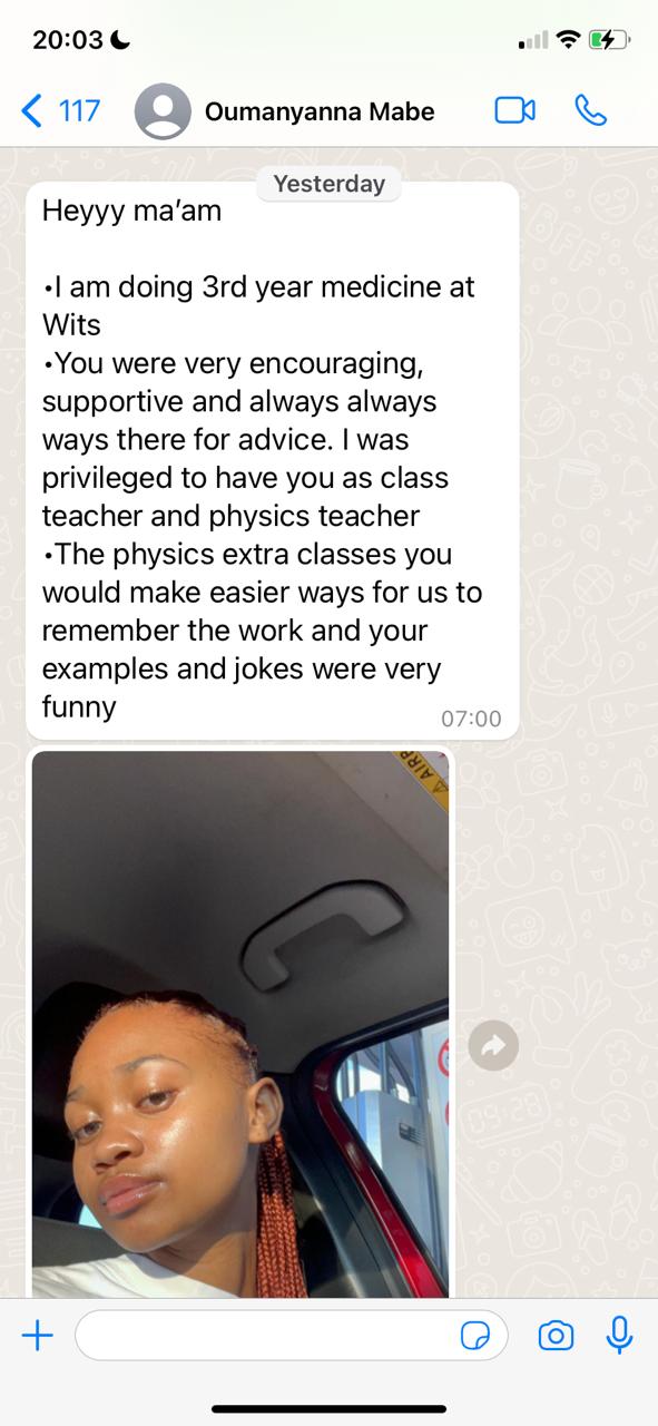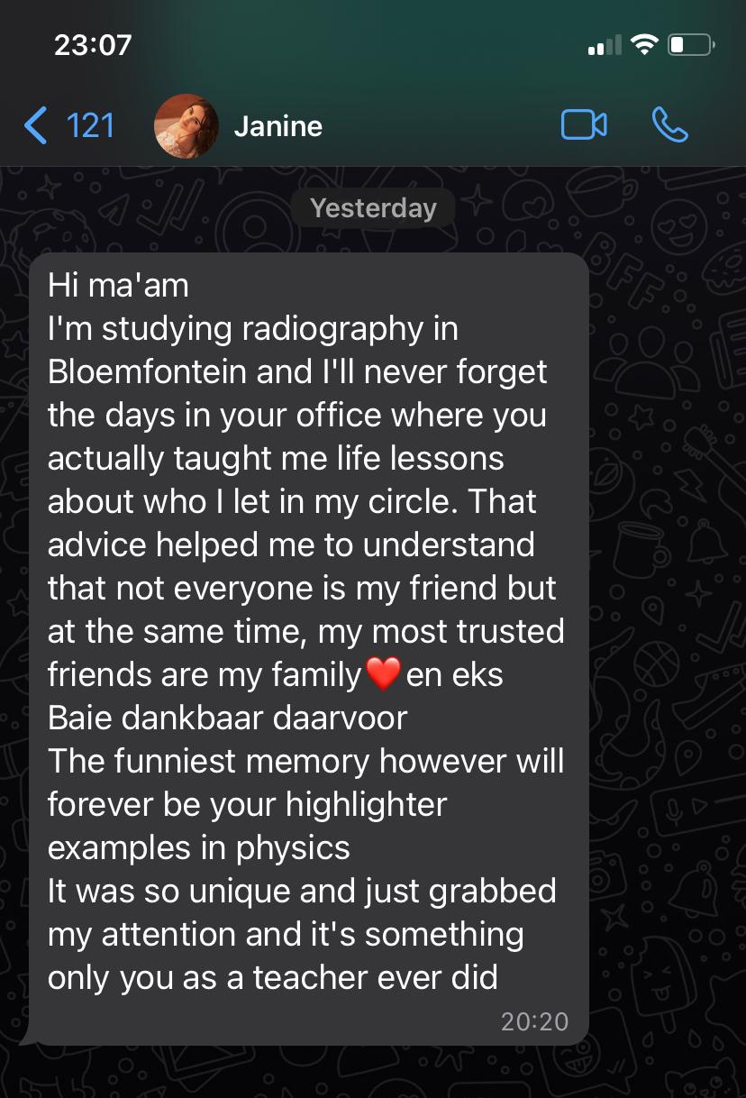 For years, Chrisna has walked alongside learners who doubted their abilities, felt overwhelmed by subjects like Physical Sciences, or were told their goals were unrealistic. Through calm structure, logical teaching, and genuine belief in each learner, she helped them rebuild confidence, discipline, and direction.