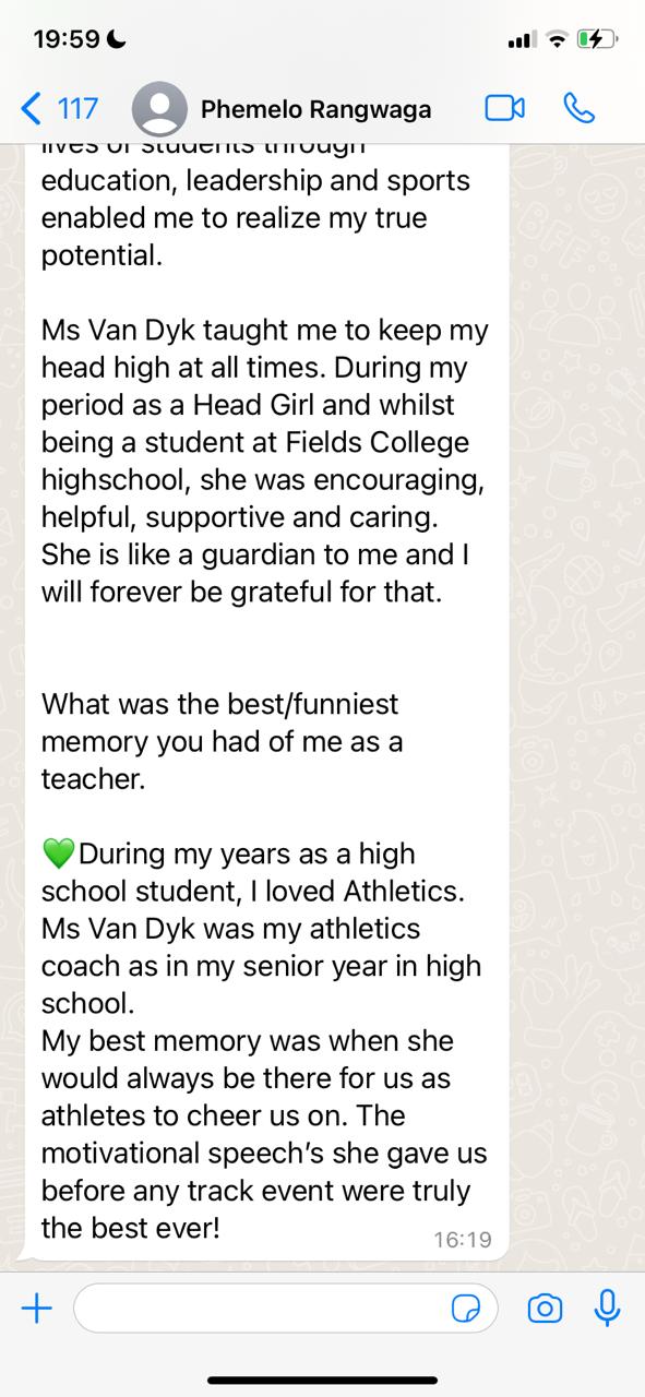 Beyond academics, Chrisna is known for mentoring learners through life decisions, leadership roles, and personal growth. Whether supporting head learners, athletes, or struggling students, she leads with consistency, faith, respect, and integrity.